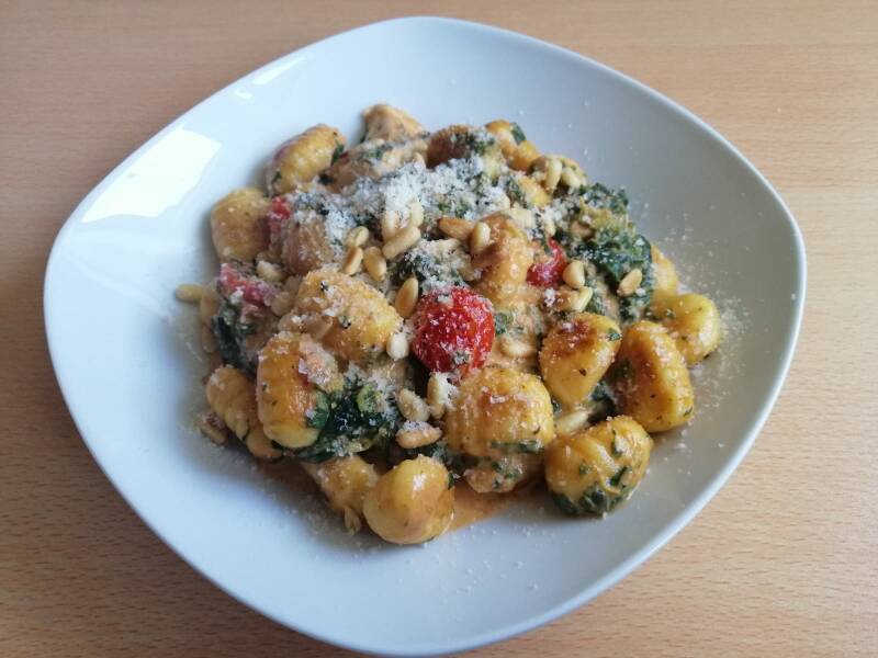 Gnocchi in Tomaten-Sahnesauce mit Spinat