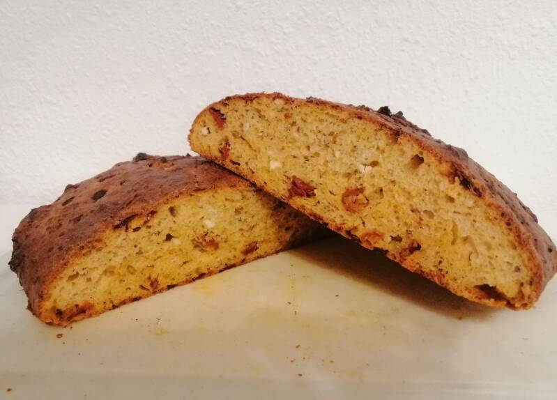 Mediterranes Brot mit Feta und getrockneten Tomaten