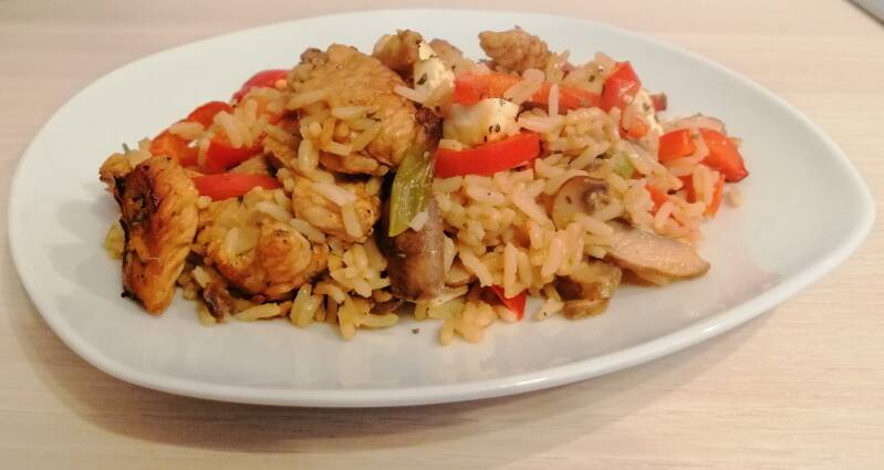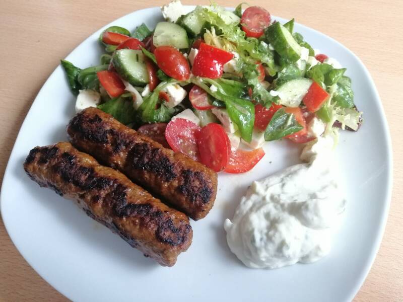 Souvlaki mit Djuvec-Reis und Tzatsiki